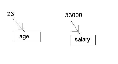 salary = 33000;Furthermore, we can do calculations with the values, and can change the value in a variable.